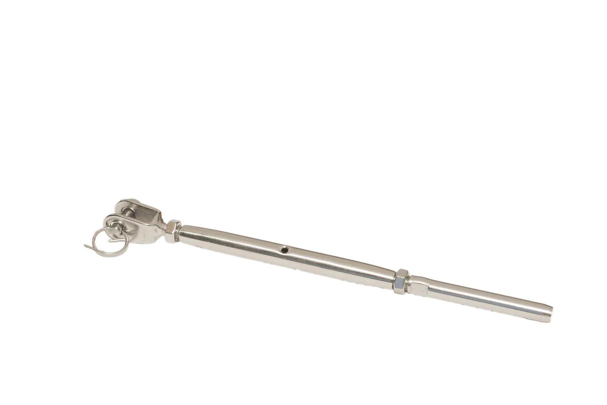 Stainless steel bottlescrews with a jaw-to-swage configuration are designed to tension wire rope in balustrade systems, rigging assemblies, and general stainless cable installations. The combination of a jaw fitting at one end and a swage terminal at the other provides both flexibility in connection and a secure, permanent attachment to the wire rope, making this style of bottlescrew a popular choice in architectural and marine applications.